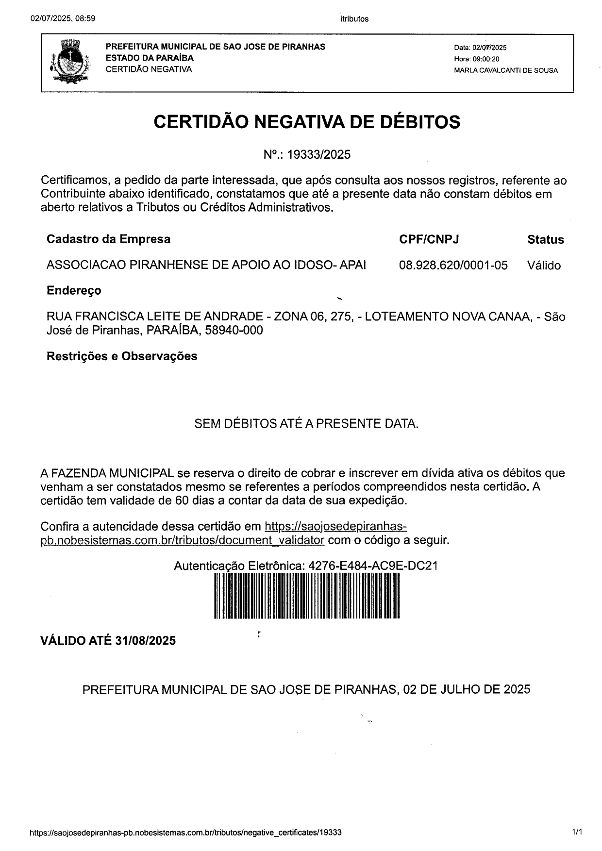 O Lar do Idoso Cirilo Pereira de Alencar, mantido pela Associação Piranhense de Apoio ao Idoso - APAI, foi fundado em 27 de dezembro de 2007. Inicialmente funcionando em imóvel locado situado na...